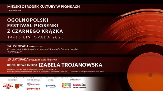 Artykuł Pionki znów rozbrzmiewają muzyką z winyli! Ogólnopolski Festiwal Piosenki z Czarnego Krążka – 14–15 listopada 2025 pochodzi z serwisu Miejski Ośrodek Kultury w Pionkach.