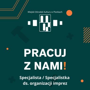 Artykuł Nabór na stanowisko specjalisty / specjalistki ds. organizacji imprez w Miejskim Ośrodku Kultury w Pionkach pochodzi z serwisu Miejski Ośrodek Kultury w Pionkach.