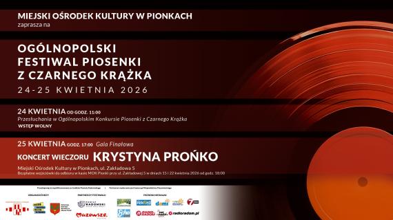 Artykuł Nabór do Ogólnopolskiego Festiwalu „Z Czarnego Krążka” wydłużony do 22 kwietnia 2026 pochodzi z serwisu Miejski Ośrodek Kultury w Pionkach.