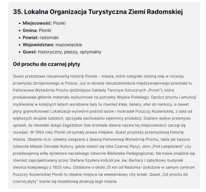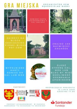 Koło Gospodyń Wiejskich w Zalesiu „rękoDZIELNE Babki” zaprasza do udziału w miejskiej grze terenowej. Na uczestników czekają: ukryte QR kody, ciekawe zagadki związane z historią Pionek i okolic, interesujące miejsca do odwiedzenia i oczywiście nagrody. Do gry można przystąpić w każdej chwili (w lipcu, sierpniu, wrześniu). Jest to ciekawa propozycja dla dzieci, młodzieży i dorosłych na spędzenie wolnego czasu podczas wakacji. Wypełnione karty zgłoszeniowe prosimy oddać do CAL lub MOK do 12.10.2020r. Zasady gry: – odbierz kartę zgłoszeniową w Centrum Aktywności Lokalnej w Pionkach, w Miejskim Ośrodku Kultury w Pionkach (możesz ją tez wydrukować ze strony organizatora www.geocaching-pionki.blogspot.com lub partnerów) – przejrzyj blog, – po kliknięciu na konkretną skrytkę zobaczysz: informacje o danym miejscu, budynku oraz pytania na które należy odpowiedzieć lub informację, że należy odszukać QR kod (dopiero po jego odnalezieniu i zeskanowaniu dowiesz się jakie jest pytanie, na które należy udzielić odpowiedzi) – na część pytań odpowiedzi znajdziesz w zasobach internetu, w QR kodach ukrytych na obiektach lub w ich pobliżu oraz w innych źródłach, pamiętaj – kto szuka, nie błądzi, – odwiedź miejsca, o których jest mowa, odpowiedz na pytania i zapisz je na karcie odpowiedzi, – oddaj wypełnioną kartę osobiście lub listownie do CAL lub MOK, – [...]