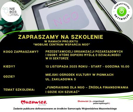 Artykuł Zapraszamy na szkolenie „Fundraising dla NGO – źródła finansowania i gdzie ich szukać” pochodzi z serwisu Miejski Ośrodek Kultury w Pionkach.